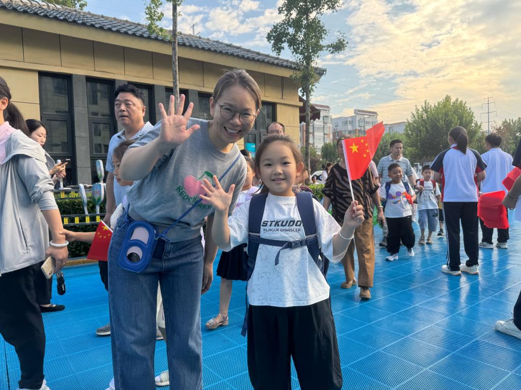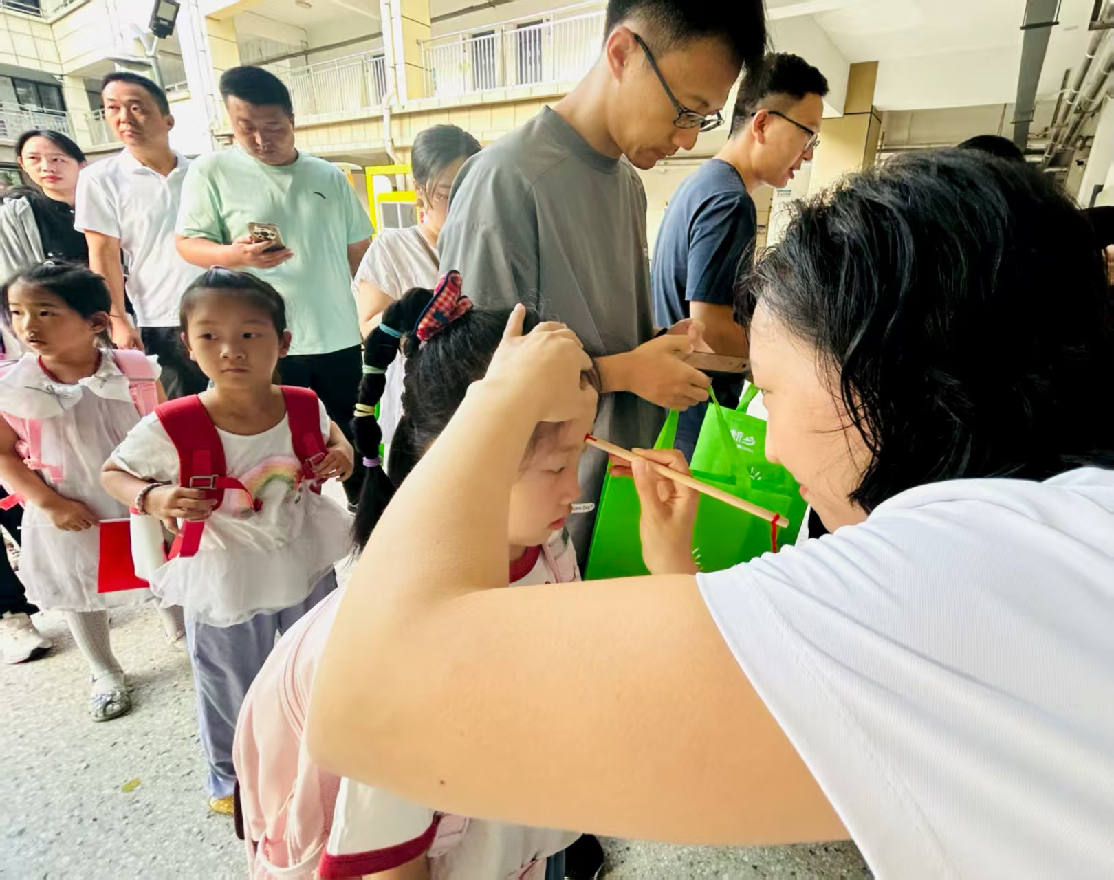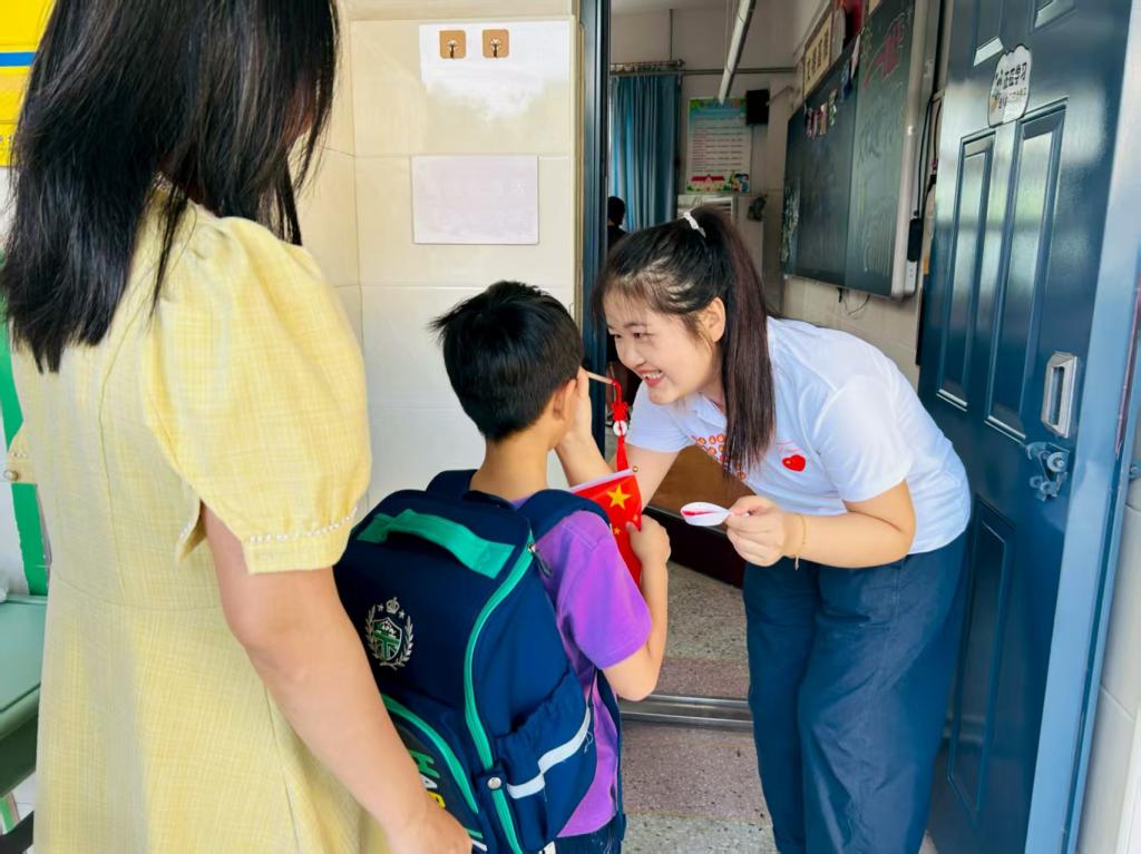 进入校园,老师们为每位新生递上一面鲜红的小旗。孩子们手持红旗,步伐轻快地穿行于校园,红色的旗帜在晨光中微微飘扬,映照出稚嫩脸庞上的憧憬与喜悦,成为校园里一道亮眼的风景线。