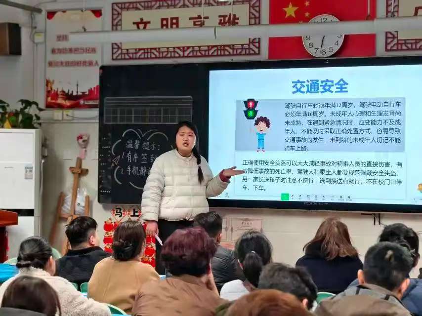 家庭是交通安全教育的重要阵地。在3月18日召开的家长会上,各班班主任为到场的家长们开展了一场专题交通安全宣讲会,推动家校协同筑牢安全防线。提醒家长要以身作则,自觉遵守交通规则,为孩子树立文明出行的榜样,主动教育孩子远离交通陋习,共同营造安全有序的校园周边交通环境。